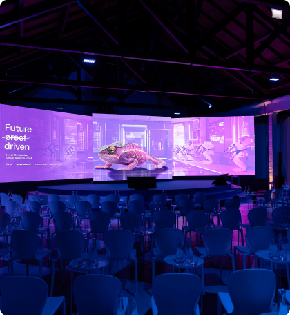 siemens recognize The Siemens Recognize event at Cascais Hippodrome gathered 2,000 to celebrate talent, unity, and sustainability, marking Siemens' largest event in Portugal. view more project details people overview A live DJ and Mete Cá Sets energized the event, highlighting Siemens' sustainability efforts. Led by Luana do Bem, the event celebrated Siemens employees with activities, awards, and a custom app. 2.000 sonae annual meeting The Sonae Annual Meeting at Real Companhia Velha focused on embracing transformation and adaptability under the theme "Future Proof Driven." view more project details people overview Chris Barton's keynote was followed by the "Future Proof" exhibition. The event gathered Sonae leaders, including CEO Cláudia Azevedo, to discuss future challenges and opportunities. bial | pd summit BIAL celebrated its 100th anniversary at Fundação Champalimaud with 400 guests, honoring its legacy and future innovation in Parkinson's research. view more project details people overview The event featured dynamic scenography, launched Kynmobi with an "energy bar," and ended with a Portuguese dinner at Estufa Fria. The summit opened with an emotional video of patients sharing their journeys and thanking clinicians for transforming their lives. 400 bp portugal | convention In March 2024, bp Portugal marked its 95th anniversary at Convento de São Francisco in Coimbra with 350 guests, honoring its legacy and vision. view more project details people overview The convention marked a bp milestone, blending legacy, innovation, and future energy. Hosted by Catarina Furtado and Nadim Habib, the event featured the "Time Capsule" and "Energy in Connection" wool web. 350